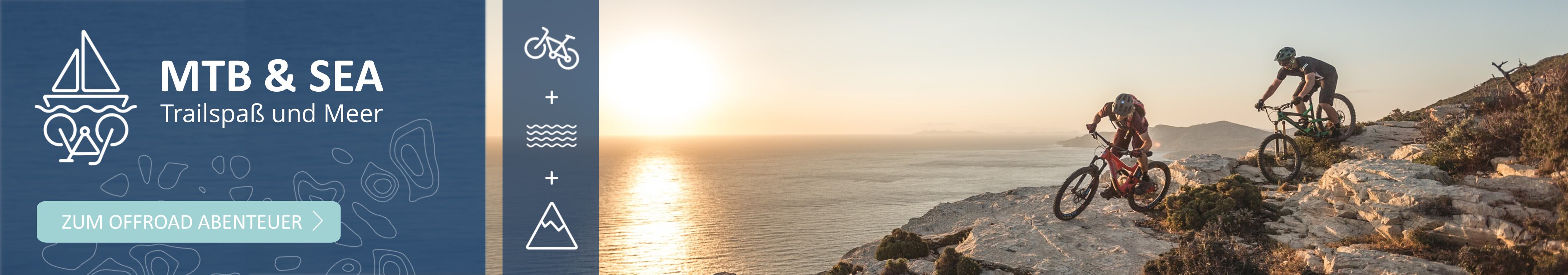 Winterblues? Der Frühling ruft! Sie haben genug von den kalten Wintertagen? Nehmen Sie mit uns Kurs auf den Frühling! Nutzen Sie unseren exklusiven Frühlingsrabatt auf ausgewählte Termine und sichern Sie sich Ihren Platz an Bord. Ob entspannte Spaziergänge durch Hafenstädtchen, Fahrradtouren durch farbenfrohe mediterrane Landschaften oder einfach das Genießen der ersten warmen Sonnenstrahlen an Deck – der Frühling hat Einiges zu bieten! Zum Frühlingsrabatt MTB & SEA Schon gewusst? Inselhüpfen gibt es auch für Offroad-Fans! Auf unseren Mountainbike-Reisen wohnen Sie an Bord eines Motorseglers, entdecken traumhafte Inseltrails, genießen Badepausen in türkisblauen Buchten und lassen die Abende bei einem Sundowner in malerischen Küstenorten ausklingen – die perfekte Mischung für einen unvergesslichen Bikeurlaub. Alle MTB-Touren