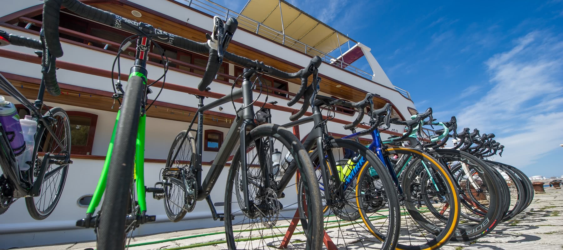Itinerary Accommodation Rental Bikes Dates & Prices Journey Extended Stay Things to note Itinerary 1st Day Trogir (Embarkation) – Islands of Brač: Postira(aprx. 30 km / 500 m of elevation) Individual arrival to Trogir and embarkation on board between 1:00 and 2:30 pm. At 3:00 pm we take a short cruise to the nearby island of Brač. Once we have arrived in the seaside town of Postira, we unload the bikes and start with the adjustments! Our warm-up tour takes us along the coast of the island Brač to Pučišća and back. We enjoy a relaxed evening in this sleepy town, familiarizing ourselves with the boat and our fellow travelers over a first evening meal together. 2nd Day Island Brač – Makarska (mainland) (aprx. 80 km / 1,440 m of elevation) Brač is famous for its radiant, precious limestone that was, among others, used for the White House in Washington and in the construction of the German Reichstag building in Berlin. Today’s ride leads us from Postira traversing the island in all directions with multiple climbs and incredible views before enjoying an incredible descent to Sumartin. Here the boat awaits our arrival, and we cruise to the hol-iday town of Makarska on the mainland. The night is spent here. 3rd Day Makarska - Island Hvar: Sućuraj (aprx. 94 km / 1,560 m of elevation) Makarska sits at the foot of the Sveti Jure Mountain, the heart of the Biokovo Nature Park. After a nourishing breakfast our tour today takes us along the coast before climbing the coastal mountain range. We circumnavigate the Biokovo Nature Park with some challenging climbs but also some in-credibly scenic panoramas. Back in Makarska, we board the boat and navigate to the harbor of Sućuraj at the eastern most point of the Island of Hvar. We enjoy a peaceful night for recovery. 4th Day Hvar Island: Supetar – Stari Grad (aprx. 60 km / 700 m of elevation) The island of Hvar is perfect for the fourth ride of the week. With a less challenging ride today, we can focus on enjoying the island vibe with views of the sea multiple times throughout the undulating landscape. We cycle from the sparsely populated eastern tip of the island towards the west where the island comes to life with the towns of Hvar, Stari grad and Jelsa. We can cool down with an ice cream along the way before retiring to the boat in the afternoon in Stari Grad. 5th Day Korčula Island: Vela Luka - Vis Island(aprx. 52 km / 830 m of elevation) On our training ride today we explore island of Korčula on a round tour. It is considered by many to be the most beautiful island in Dalmatia. A breathtaking landscape and a Mediterranean climate awaits us. Look forward to multiple panoramas and lush vegetation. We meet our boat back at our starting point of Vela Luka and enjoy a relaxing cruise in the afternoon to the Island of Vis. It is here that we spend the night. 6th Day Vis Island - Brač Island(aprx. 39 km / 790 m of elevation) Vis is the furthermost inhabited island from mainland Croatia. A Greek colony called Issa inhabited the island 2,300 years ago. Due to its strategic location, it was a military zone until 1995 and prohibited for foreign tourists. The island is small but the ride is a delight. We climb, we coast, we descend all whilst riding an entire loop of the island and enjoying the most incredible views along the way. Back at the boat we cast off for an afternoon cruise to the port of Milna on the Island of Brač where we spent the night. 7th Day Insel Brač - Trogir(aprx. 47 km / 680 m of elevation) In the morning, we enjoy a short cruise back to Trogir. From here, your last cycling stage starts through the hinterland and numerous small villages. On the way, there are great views of the town of Trogir and the island of Čiovo. Afterwards, there will be enough time to visit the Old Town of Trogir, listed as a UNESCO World Cultural Heritage Site. The last evening aboard is celebrated in traditional fashion in the company of our fellow travellers and guides. 8th Day Trogir (Disembarkation) After breakfast disembarkation until 9 am. Individual travel home or extension of your vacation in Croatia. Accommodation San Snova (Premium Class) The wooden motor yacht San Snova took its maiden voyage in 2009 and was constructed exclusively for Islandhopping. Built by hand over the course of three years, this was the last wooden passenger ship of its kind to be built in Croatia. The cabins are spacious and comfortable and furnished functionally. They are all air conditioned and include a private bathroom with a shower and WC. The wood clad saloon emits a relaxing atmosphere which is carried throughout the boat with the many comfortable sitting areas on the ships decks. Sunning mats can be enjoyed on the sundeck. The professional crew… Read More Rental Bikes Gravel & Road Bikes Our gravel and cyclocross bikes can be ridden over a variety of terrain. These bikes run perfectly on smooth asphalt surfaces as well as on gravel trails. The frames are extremely robust while still light. The relatively wide tires provide good traction when cycling on loose surfaces. Cyclocross bikes allow for adventurous rides without compromise.… Read More Services, Dates & Prices The below calendar lists the basic cruise price per person. The final cruise price depends on cabin type, cabin occupancy and any additional optional services. The prices for additional optional services are listed below the travel calendar. The green checkmark indicates that the trip is secured. Included services 8-day trip on a motorized yacht with crew 7 nights in a twin cabin below deck with shower/toilet 7 x half board Guided road bike tours as described in the itinerary Bed linen and towels English speaking tour guide Not included in the basic tour price Journey to Trogir Tourist taxes and Basic-drink-package (drinking water, tea and filter coffee): 80 euro/person.For children up to age 16: 40 euro/person (to be paid to the captain) Drinks on board (tally sheet: to be paid to the c